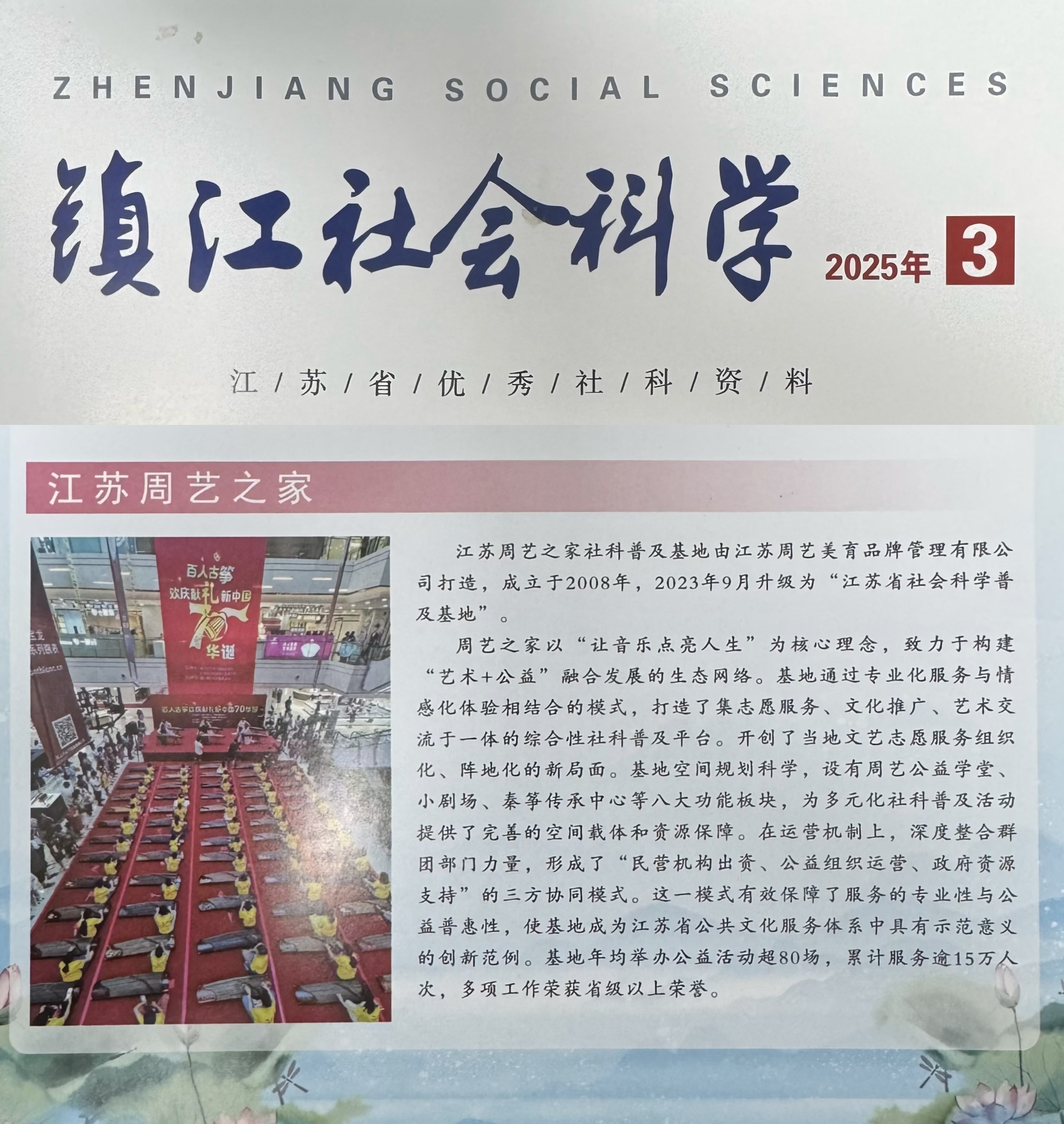 江苏周艺之家社科普及基地由江苏周艺美育品牌管理有限公司打造,成立于2008年,2023年9月升级为“江苏省社会科学普及基地”。
